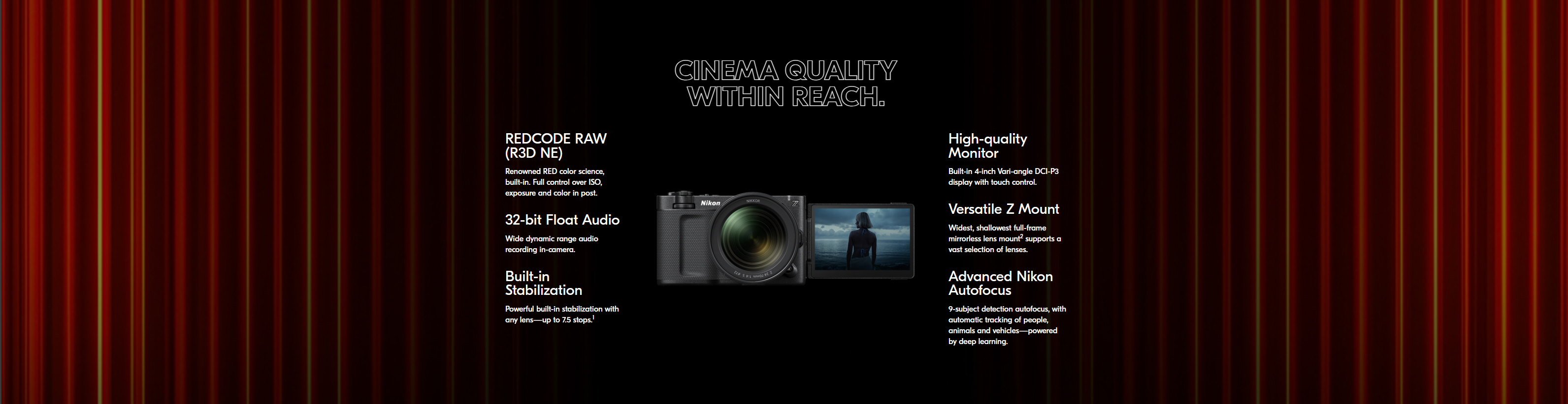 What makes it special? Nikon teamed up with RED Digital Cinema (yep, that RED) to pack pro-level tech into a compact body. The ZR introduces a new recording format called R3D NE, based on RED’s legendary RAW codec, so you’re getting RED-level colour science and exposure accuracy—right in a Nikon body.